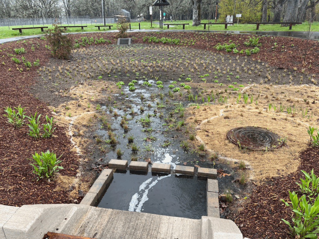 Рейн-ґарден — це мілке заглиблення з рослинами, яке приймає дощову воду, дає їй просочитися в ґрунт і фільтрує дрібні частинки. Дощові сади розвантажують лівньовку, зменшує ерозію та дозволяє зберігати вологу там, де вона потрібна. Чаша має мати плавні борти, перелив на випадок зливи та посадки під різні рівні зволоження: дно — вологолюбні види, схили — середньовологості, берег — стійкі до періодичної посухи. Підбір суміші для біоретенції та перевірка інфільтрації — два кроки, що роблять систему стабільною.