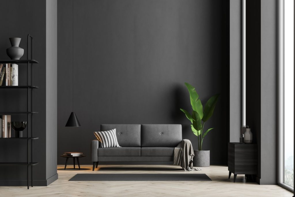 - Темні стіни + темні меблі: іноді темні стіни (наприклад, графітові) можуть добре поєднуватися з меблями з темного дерева (венге, горіх), створюючи драматичний, затишний та камерний простір, що особливо підходить для робочих кабінетів чи спалень.